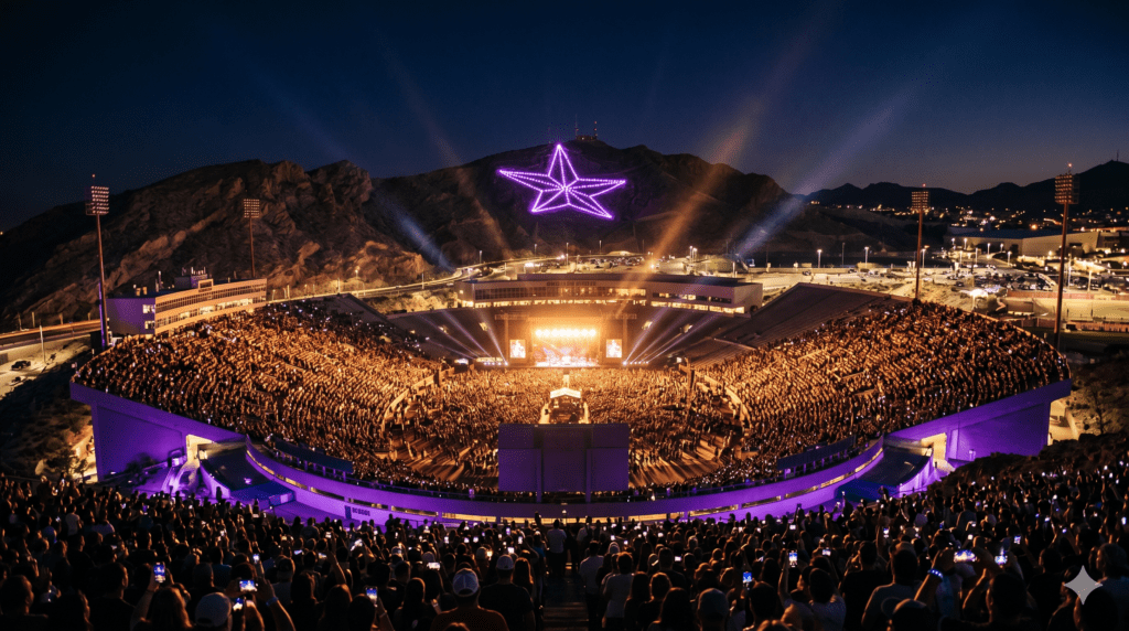 May 2 and 3 are going to transform El Paso. BTS, all seven members, on a 360-degree stage at Sun Bowl Stadium — performing the Arirang album live for the first time in the U.S. Southwest. Get your tickets through Ticketmaster, take your shot at free seats through The Coffee Spot’s Sip, Snap & Win contest, and check Borapaso.com for the full fan event lineup. Follow VenPro Solutions for continuing El Paso concert coverage.